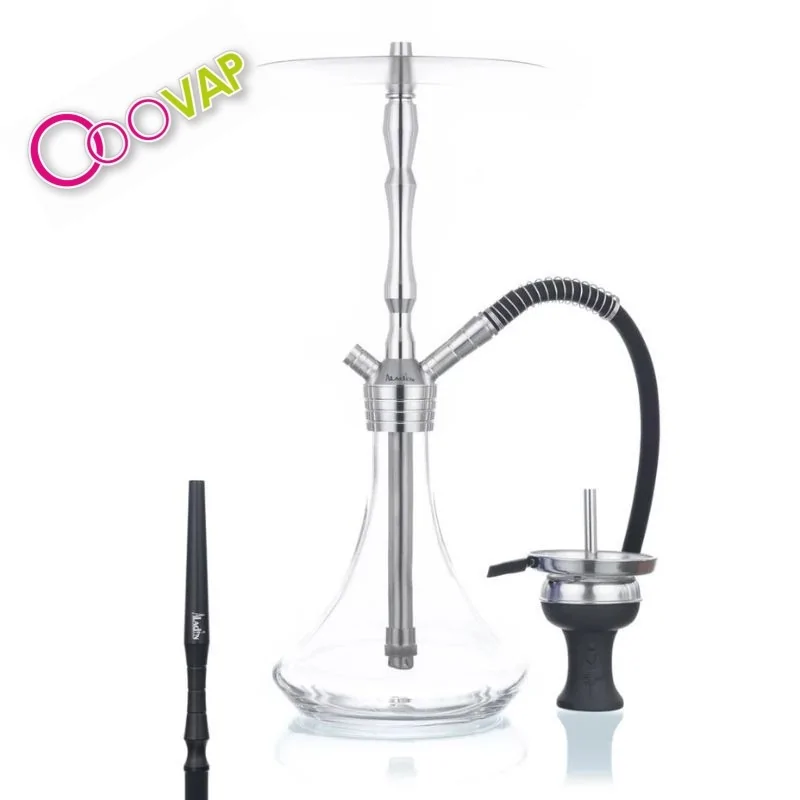 La Aladin MVP 460 M1 Gastro Clear es una cachimba de tamaño medio con acero inoxidable V2A, difusor ajustable y sistema cerrado, ideal para una fumada suave y eficiente.