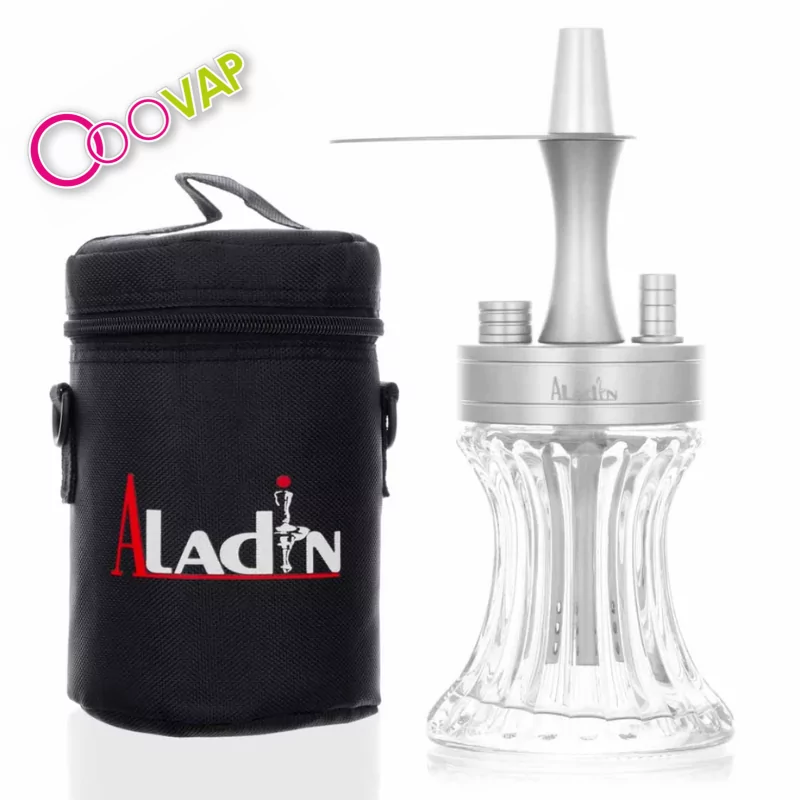 Con la Aladin 2 Go Alu, nunca tendrás que renunciar a tu sesión de shisha mientras estás fuera de casa. El aluminio de alta calidad y el vidrio resistente garantizan estabilidad, durabilidad y resistencia al óxido. El difusor integrado reduce el ruido, para que puedas disfrutar incluso por la noche sin molestar a nadie. Además, las ranuras en el vidrio permiten crear un juego de luces colorido si utilizas un portavasos LED.