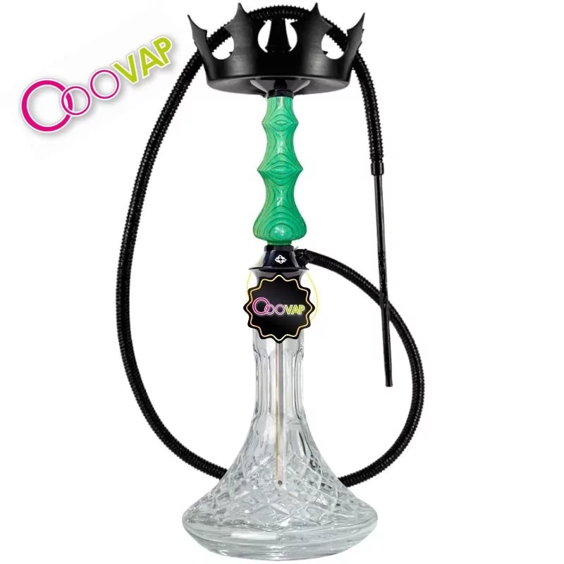 El cuerpo de la cachimba presenta un acabado en verde y negro, cuidadosamente trabajado para resaltar la veta natural de la madera y generar un contraste elegante y moderno. Su diseño está pensado para ofrecer una experiencia de fumada suave, con un flujo de humo optimizado y controlado, gracias a la estructura equilibrada y a los materiales de alta calidad utilizados en cada componente.