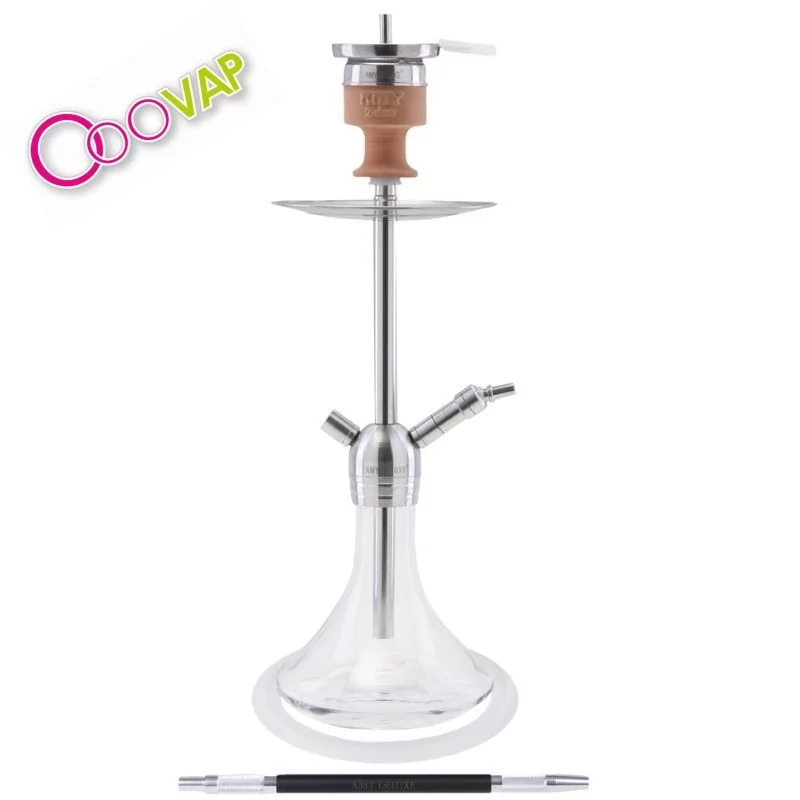 Equipada con dos conexiones para manguera, permite compartir la sesión con total comodidad. Incorpora un difusor desmontable, que permite personalizar el nivel de sonido y suavidad de la fumada según las preferencias del usuario. Su sistema de cierre roscado garantiza un ensamblaje preciso, firme y seguro, reflejando la atención al detalle característica de Amy Deluxe.
