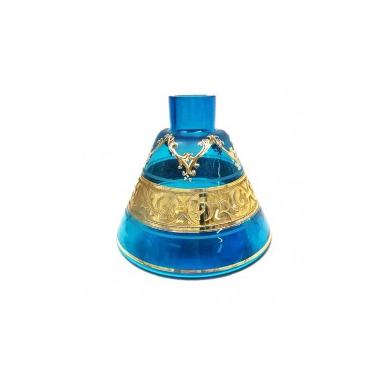 Base de cristal de bohemia para shisha de El Nefes, un artículo ideal para la personalización de cachimbas. Un vaso hecho de cristal con detalles bañados en oro. Su encaje para mástil es compacto y vale tanto para shishas de tamaño mediano como grande, nacionales o importados.