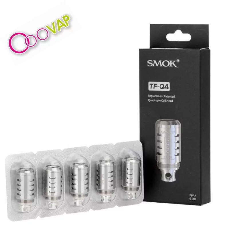 La resistencia TF-Q4 de SMOK ha sido desarrollada para el atomizador TFV4, ofreciendo una experiencia de vapeo extrema en potencia y vapor, pensada para usuarios avanzados que buscan caladas directas y densas.