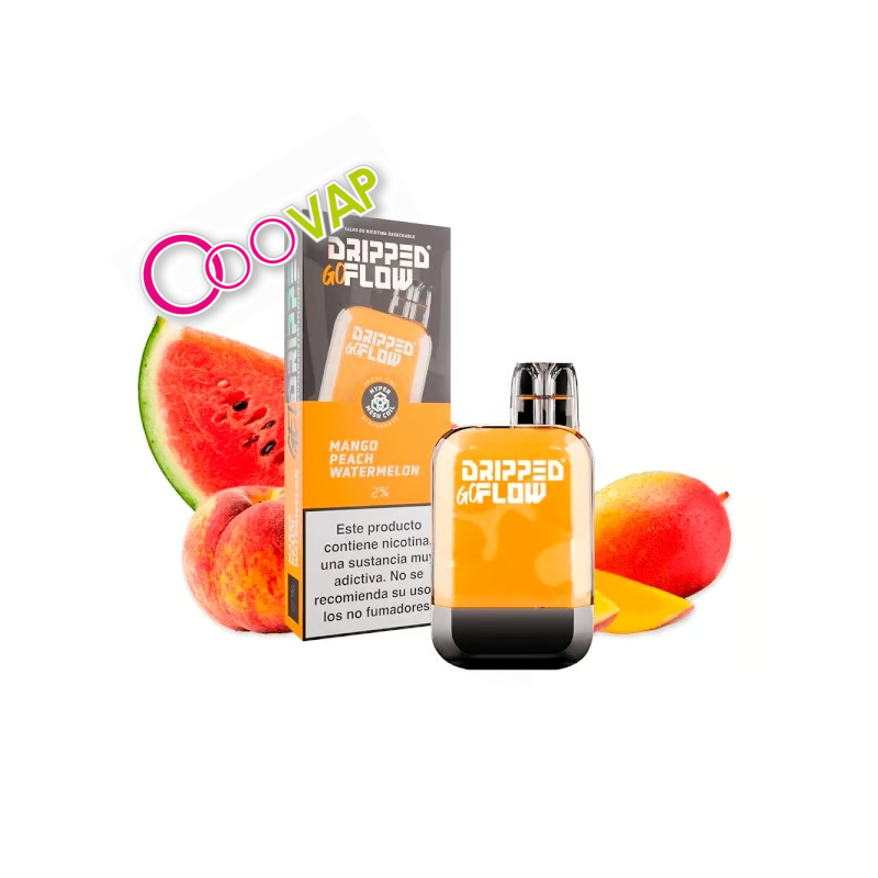 El vaper desechable de Dripped GoFlow Mango Peach Watermelon transforma cada calada en una experiencia intensa y refrescante, ideal para quienes buscan un sabor vibrante con un toque helado que despierta los sentidos. Su perfil aromático equilibra dulzura y frescura, creando una mezcla envolvente y estimulante que no empalaga.
