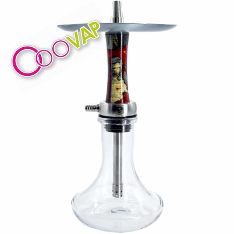 Cachimba pequeña de Toro Hookah de alta calidad, fabricada en acero inoxidable, resina y madera. Purga sobre el plato con diseño original y gran rendimiento. Incluye maletín de transporte.