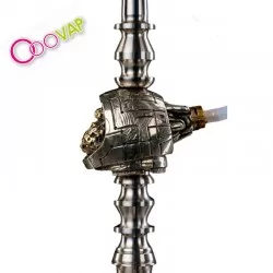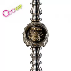 El cuerpo principal o shaft está fabricado en acero inoxidable de alta calidad, garantizando resistencia, estabilidad y una larga vida útil. El plato superior (saucer) combina acero inoxidable y bronce, logrando un equilibrio perfecto entre funcionalidad y elegancia. El impresionante elemento artístico central, hecho íntegramente de bronce macizo, incorpora el sistema de purga integrado (blow-off through the art element), expulsando el humo a través de la figura decorativa y creando un efecto visual único.
