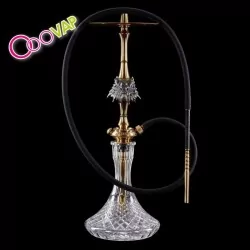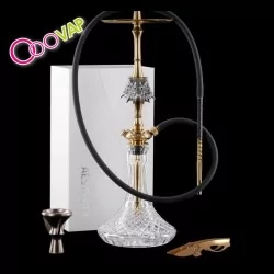 La boquilla de acero con recubrimiento de cuero y la manguera soft-touch combinan ergonomía y confort, haciendo que cada inhalación sea suave y placentera. La base de cristal tallado no solo aporta belleza, sino que mejora la filtración y la limpieza del humo, ofreciendo un sabor más puro y consistente.