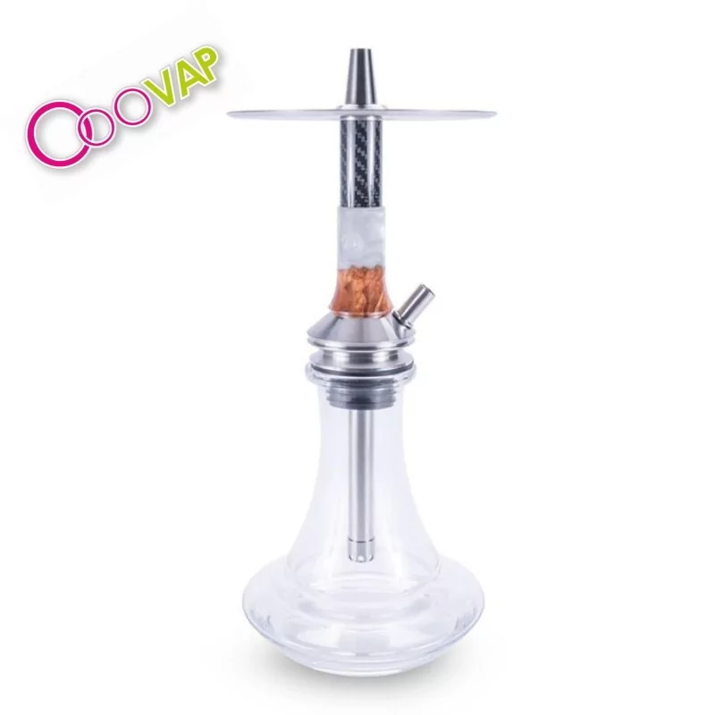 Uno de los aspectos más llamativos de esta hookah es su purga superior, situada en la parte alta del mástil. Este diseño genera un espectacular efecto visual: el humo choca contra el plato y desciende por todo el mástil, creando una experiencia única.